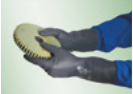 Certificat conform EN 388 și EN 374. Degetele curbate anatomic permit o dexteritate crescută. Calitate rezistentă, care îndeplinește toate cerințele în ceea ce privește rezistența la abraziune, tăieturi, perforații și substanțe chimice.