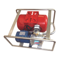 Complet cu rezervor orizontal cu membrană de 24 1, comutator de presiune, manometru, fitinguri de conectare (racorduri Storz D pe partea de aspirație și presiune), furtun de conectare între cazan și pompă, inclusiv cablu conector de ieșire de 5 m și ștecher pe cadru comun din oțel inoxidabil.